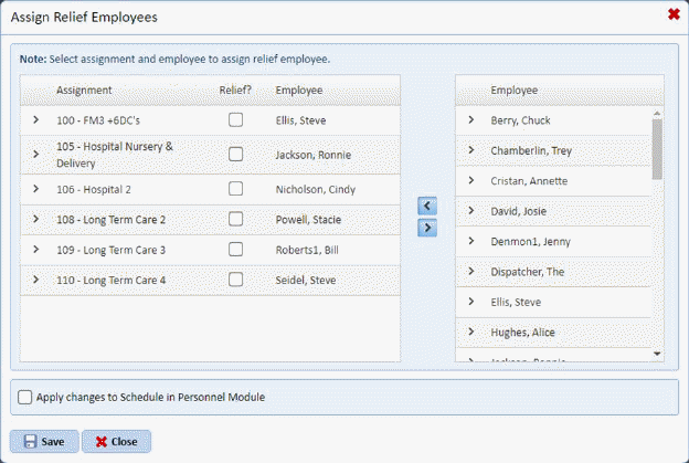 9. If you want to assign relief employees to assignments, do the following: