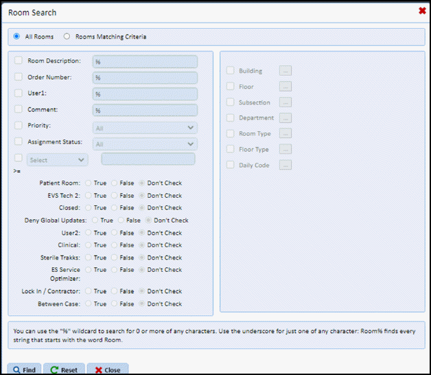 cleared using the “Clear Room(s)”