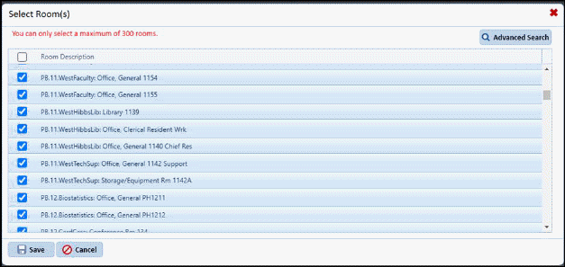 - After clicked on Search Room(s), room search pop up is shown. Refer below screenshots-