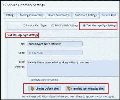 1. “Rooms - Service Request/ Long Code Labels” to “Rooms - Service Request/ Text Message Sign”