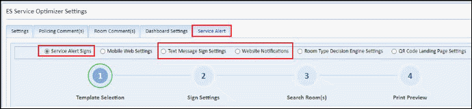 button “Service Alert Signs” on ES Service Optimizer