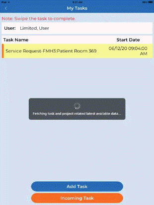 Tapping on the Task opens the details of the service request as shown below:
