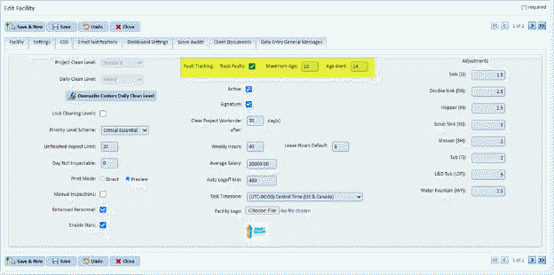 The settings involving Faults Management can be found in the Facility Module in the Preferences Tab: