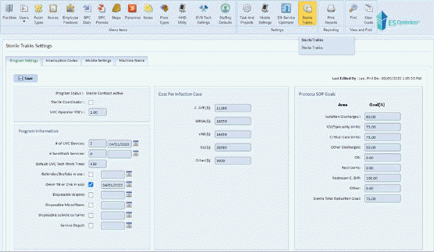 If you do not have access to ES Optimizer on the web please ask your ES Optimizer System Administrator if Sterile Trakks has been setup for use. If you do have access as an Admin to ES Optimizer, review the information below: