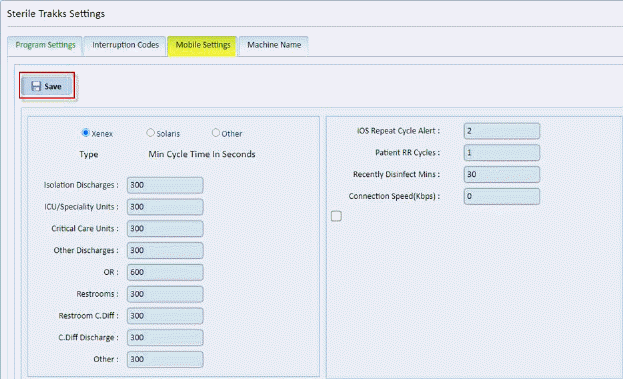 Note: you may enter different machine type cycle lengths by changing the machine Type (Xenex, Solaris, Other).