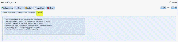 The Notes Tab is a good place to enter all the assumptions and any notes you made in building the staffing scenario. It is a good idea to document where you received your key data in case someone questions its validity at some future date. You should document any key assumptions you made in the building of the data.