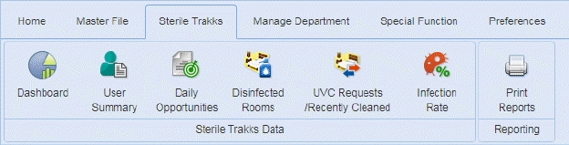 The Sterile Trakks module (if enabled) allows the tracking of UVC Light disinfection device usage as well as the resulting impact their usage has upon the Hospital Infection Rate.