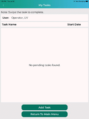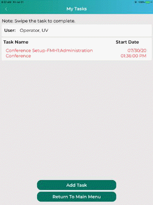 User may also swipe the task description from right to left to show the complete button. User may then complete the task by tapping “Complete Task” as shown below: