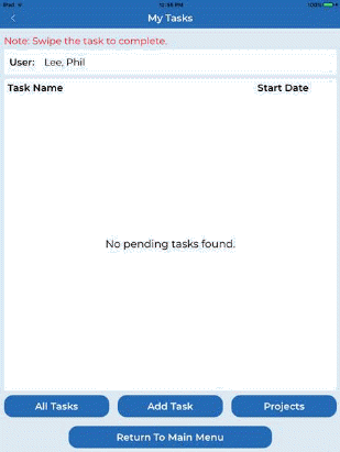 1. Tap on the Tasks and Projects button to open the “My Tasks” screen.