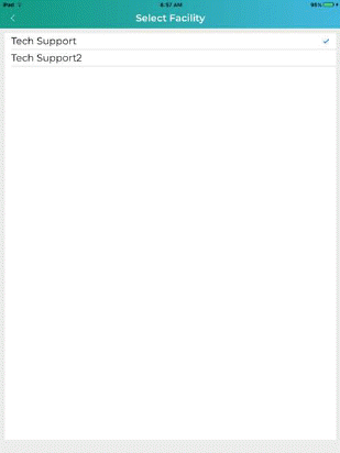 Facility Code – This button allows the user to switch between facilities, tap the facility name you wish to select as shown below: