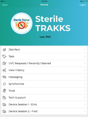 You are now ready to run two disinfect routines using two different UVC machines. Just tap the device session you wish to start and follow the disinfect room process.