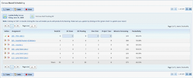 1. In the Census Based Scheduling Module shown below, select the date where you want to remove an assignment.