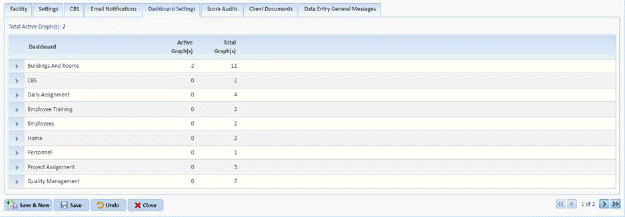 3. In the selected facility, click on the Dashboard Settings tab: