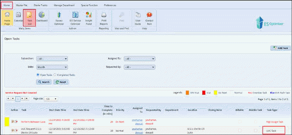 - When Sterile Trakks is Off (disabled), then UVC Tasks are shown in Task List and its Task Type will be “UVC Task”.